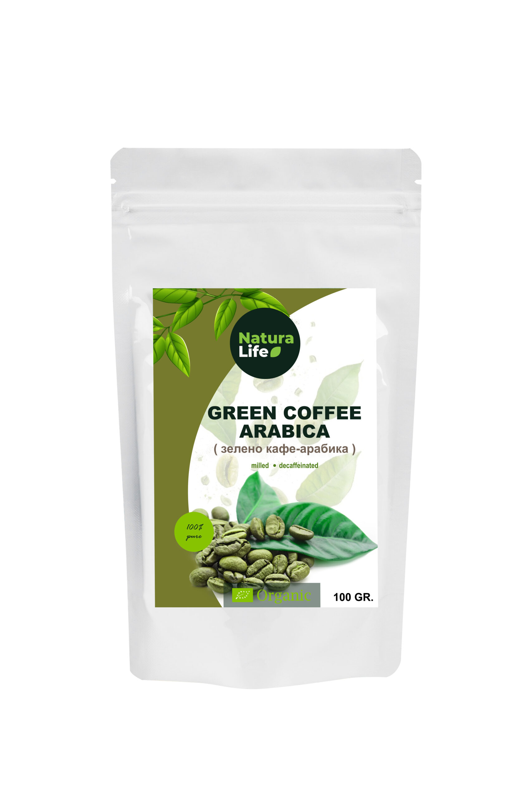 ЗЕЛЕНО КАФЕ АРАБИКА ОРГАНСКО (НЕКОФЕИНСКО) 100гр